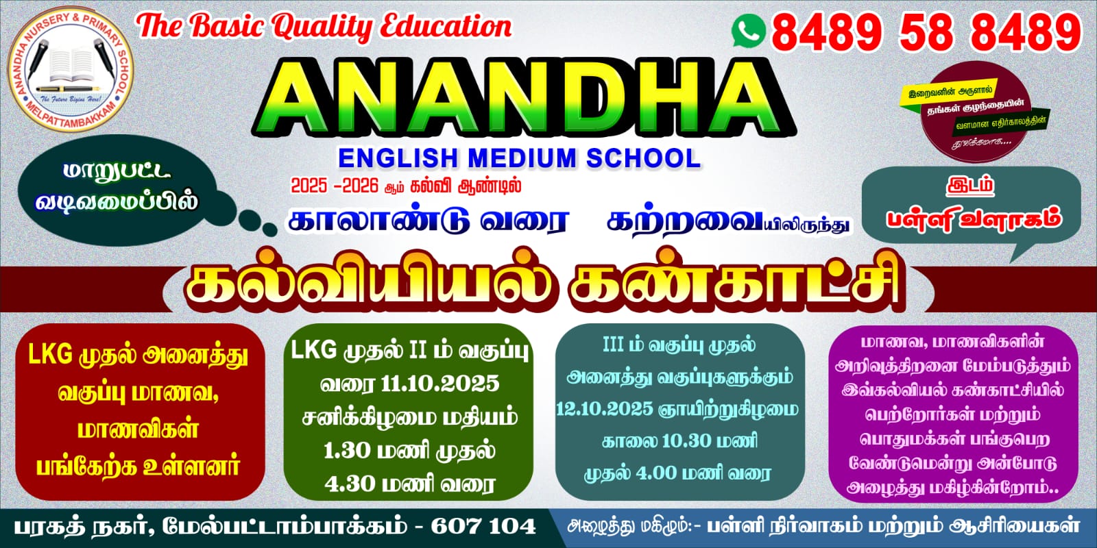 Nestled in the heart of Melpattambakkam, Anandha School is more than just an educational institution; it’s a vibrant community dedicated to shaping well-rounded individuals. With state-of-the-art facilities and a dynamic faculty, we provide an atmosphere that encourages curiosity, creativity, and critical thinking.